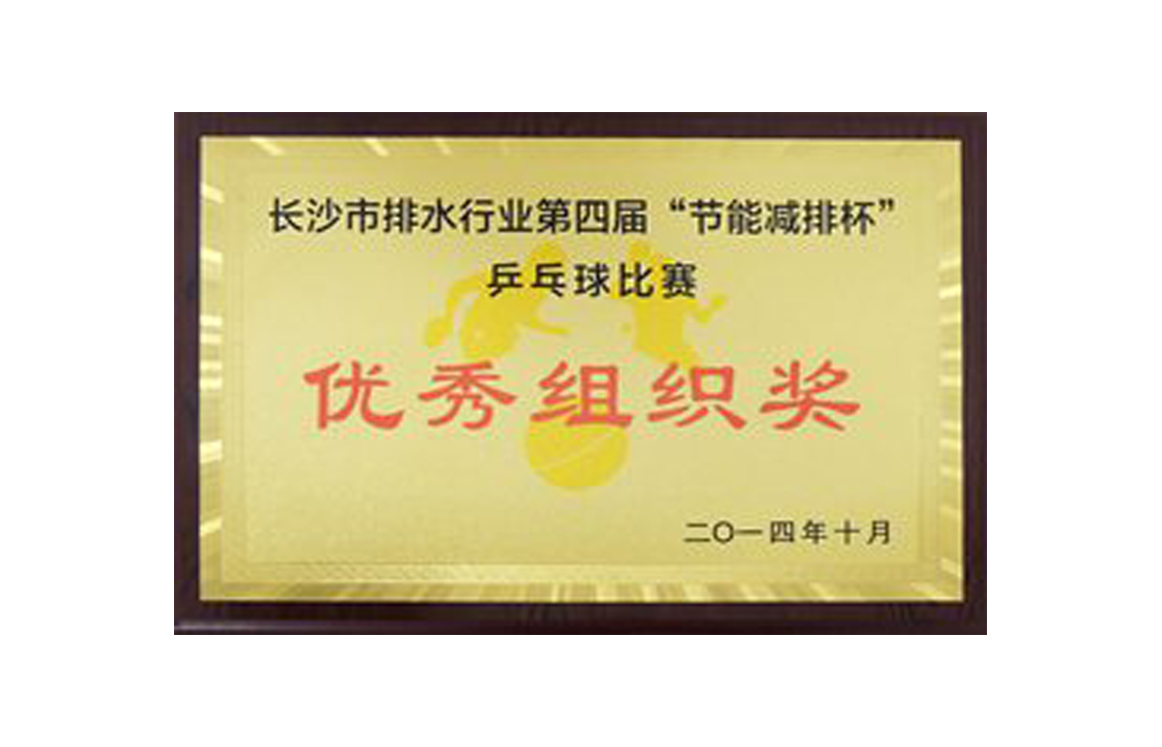 2014年長(zhǎng)沙市排水行業(yè)第四屆“節(jié)能減排杯”乒乓球比賽優(yōu)秀組織獎(jiǎng)